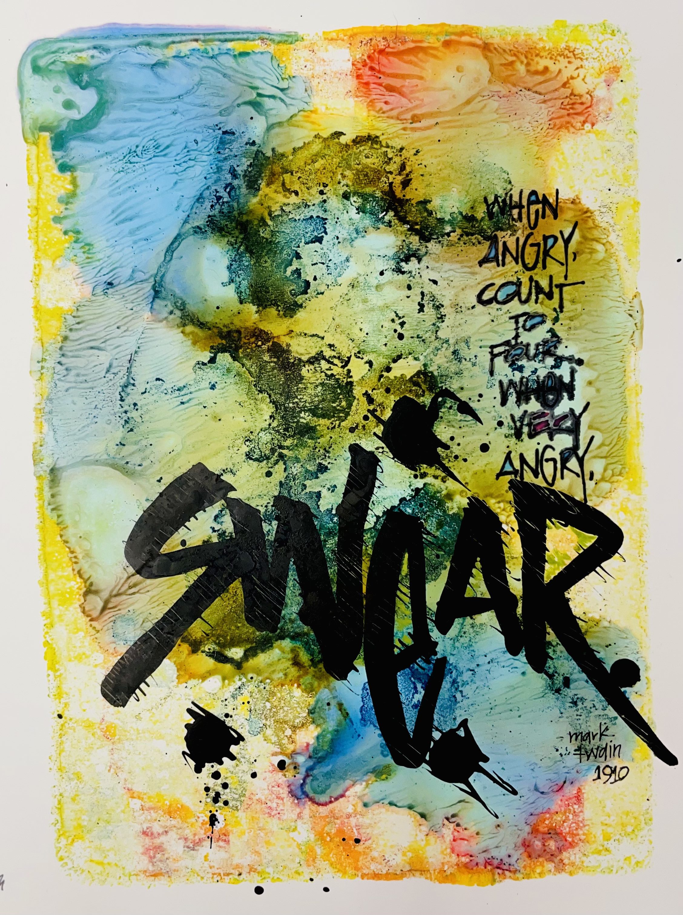 I read these words from Mark Twain and knew that I had to do something with them. As we have all known anger, he very generously points out that there are two different types. Anger, and then when we are VERY angry! No matter who we are, at one time or another, we have to express our anger or explode! I had a friend who took up boxing just for that reason. She needed to hit someone or get an ulcer…boxing was her healthy alternative to medication. Once she began regularly punching a bad, she felt better and her anger subsided. She had found her way to let her anger go.