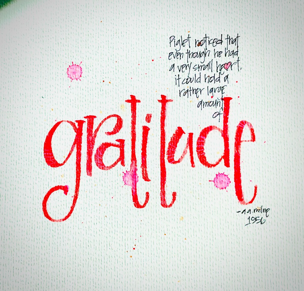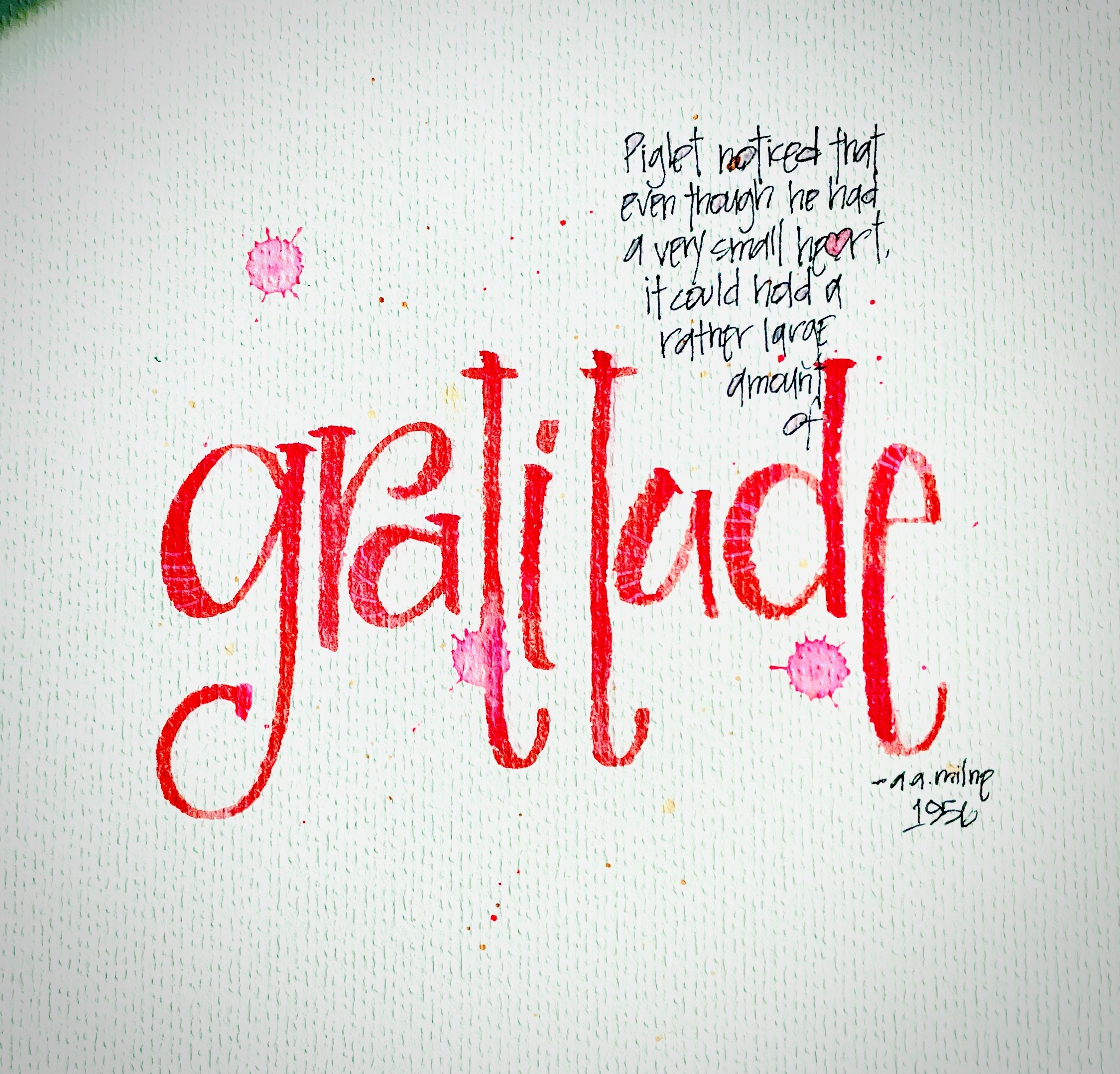 My online group has a new prompt, something from Winnie the Pooh or The Little Prince. I had fun scouring Winnie the Pooh, and was reminded of the great wisdom and lessons shared through that silly old bear. When I read these words about Piglet, Pooh’s loyal and insightful sidekick, I knew I had to bring them to life in pink ink. It was fun working in pink and bringing Piglet’s revelation closer to home.