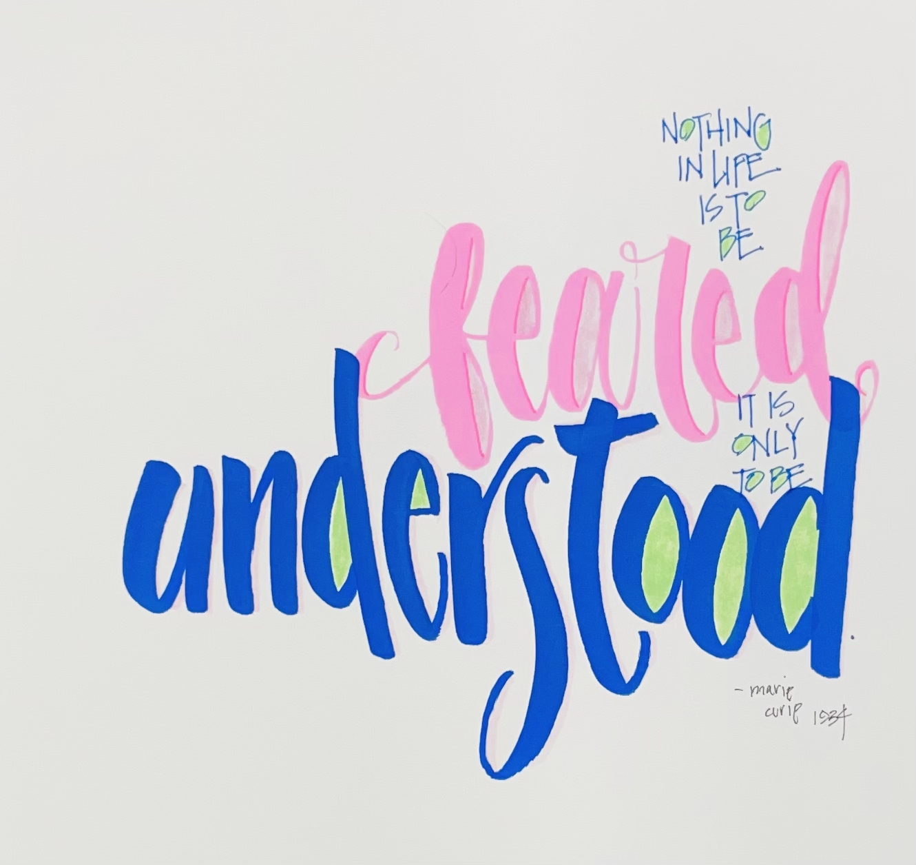Marie Curie – who died by being poisoned from the very things she studied – was a pioneer in Science and changed all of our lives forever. She never feared the side effects from polonium and radium, she spent her life trying to understand their power. She worked diligently together with her husband and discovered radioactivity. She overcame her fear by working hard and focusing on the idea of understanding