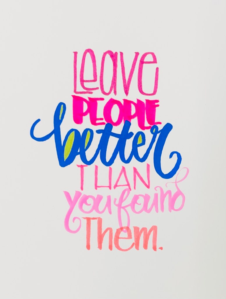 If we want people to lift us up, we too need to reciprocate that behavior. We need to leave people better than we found them – encouraged, relaxed, loved, thinking positive thoughts, and wanting to create new things. We need to actively engage and direct the conversation towards positive, uplifting and other centric behaviors.