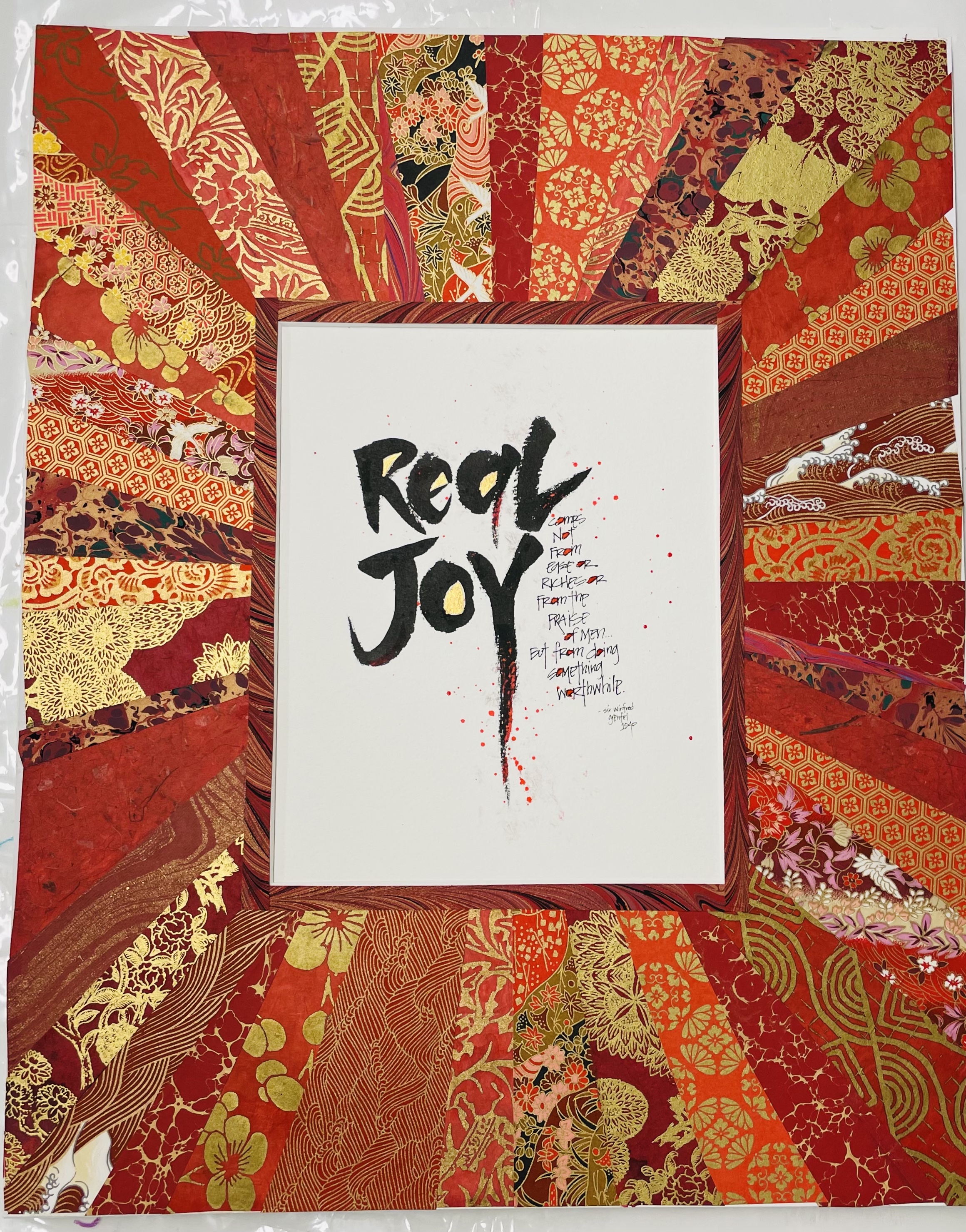 So why do this piece over? I have been looking at it on the wall in one of our guest rooms, and thought it was a little bland. I did it many years ago when my skills and tools were very different than what I do today. I thought the bold, red mat deserved lettering that was a bit more vibrant. I utilized a wide brush with black ink, a brush with red ink, and a fine liner to complete the do over. I am please with it and will finish reframing it once I am certain the ink is completely dry.