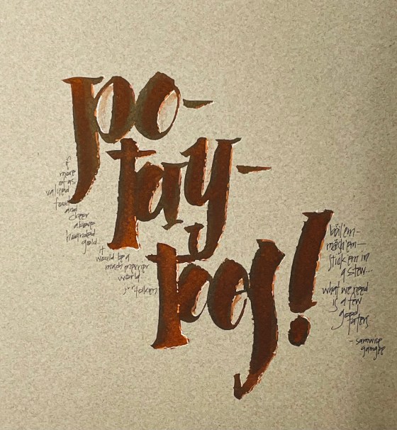Calligraphy, challenge, Food quotes, j-r-r-tolkien, JRR Tolkien, lord-of-the-rings, Potatoes, Samwise Gangee, Scribbled Lives 2024, the-hobbit, tolkien